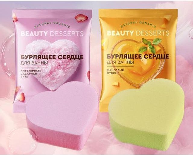 Beauty Desserts Бурлящее сердце для ванны «Манговый пудинг. Увлажнение»