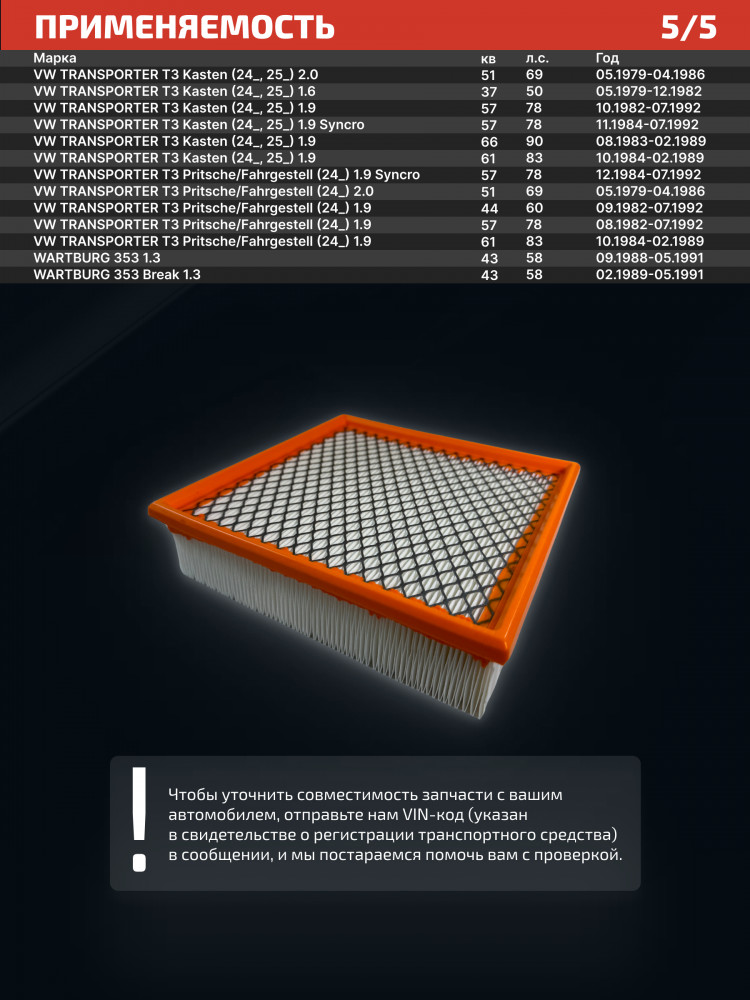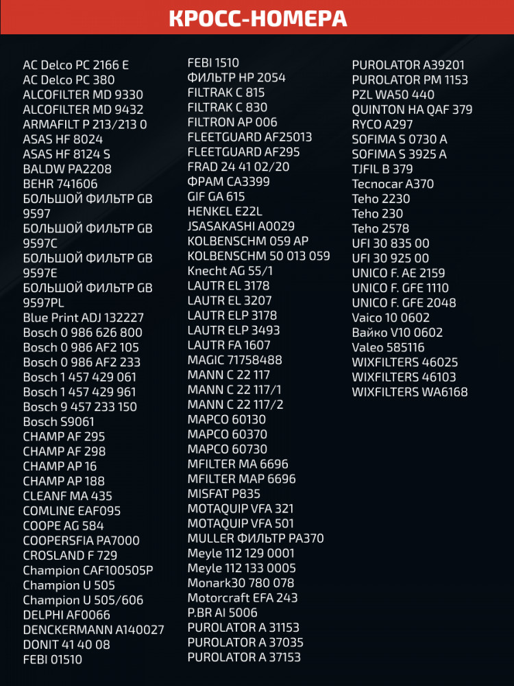 💳 Оплатить за товар можно при получении 🇰🇿 Есть бесплатная доставка по Казахстану от 1 дня 🎁 Копите бонусы с каждой покупки Воздушный фильтр BFA-201 предназначен для обеспечения чистого воздуха, поступающего в двигатель, что способствует его эффективной работе и продлевает срок службы. Он изготовлен из высококачественных материалов, обеспечивающих надежную фильтрацию и долговечность. Подходит для моделей автомобилей LADA, Audi, Jaguar, Seat, Volvo и Volkswagen. |