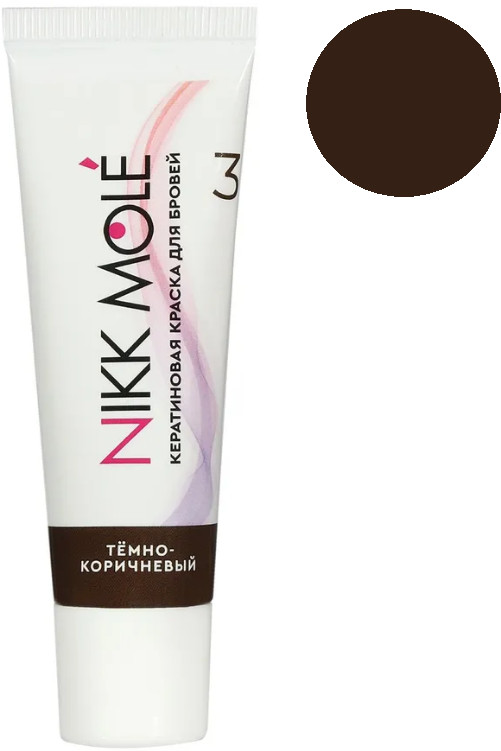 Кератиновая краска для бровей и ресниц — 3 Темно-коричневый с гидролизованным миндальным маслом и оливой для профессионального применения. Холодный кофейный оттенок густой насыщенности и яркости. Подходит для окрашивания бровей глубоких брюнеток и самых тёмных из русых девушек. В зависимости от выдержки ложится палитрой от горького шоколада до черного кофе. Плотно окрашивает кожу, поэтому незаменим в случаях с редкими бровями. Отпечаток на коже и заметное потемнение волосков происходит уже на начальном этапе выдержки в 5 минут.