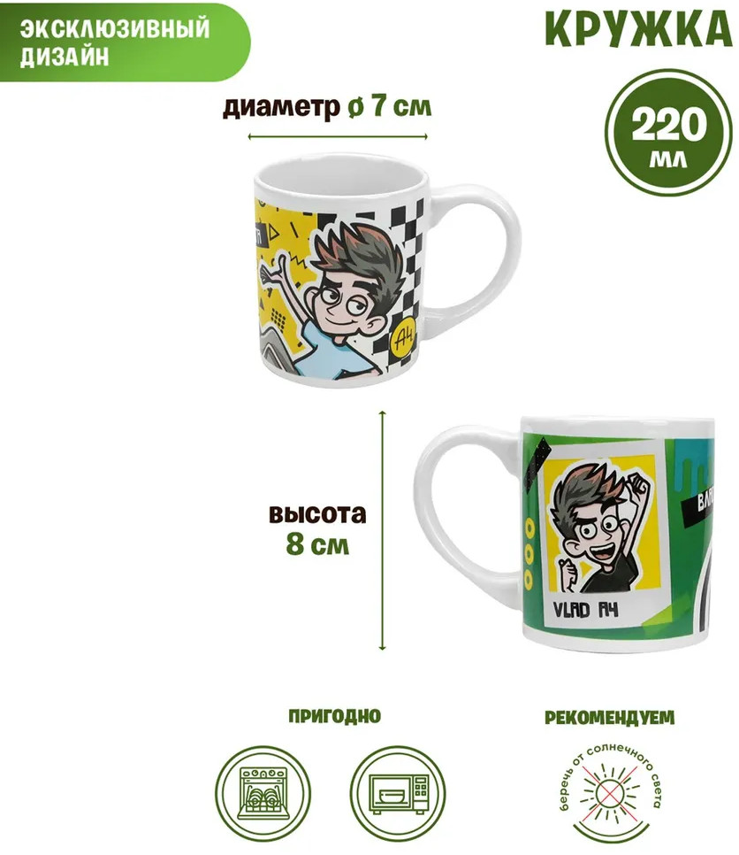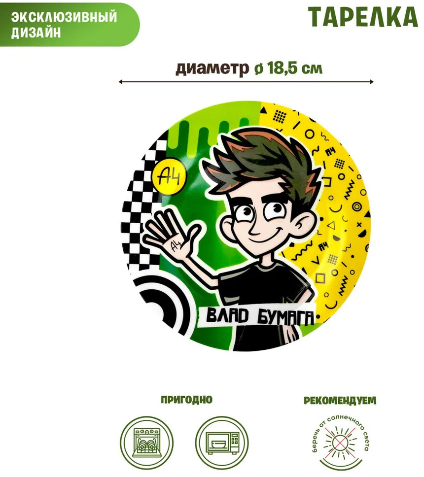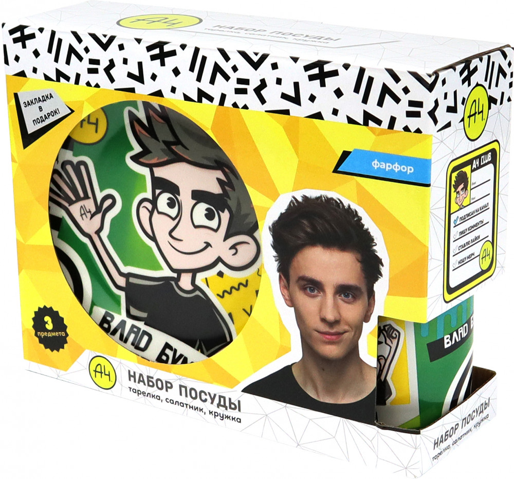 💳 Оплатить за товар можно при получении 🇰🇿 Есть бесплатная доставка по Казахстану от 1 дня 🎁 Копите бонусы с каждой покупки Серия: Влад А4 Оригинальная посуда торговой марки ND Play с изображением популярного блогера и любимого персонажа современных детей Влада А4. Набор детской посуды выполнен из высококачественного фарфора, имеет яркую картинку и упакован в подарочный картонный короб. Детская посуда отличается оригинальным дизайном: на каждом из предметов изображена символика Влада А4 и сам блогер. Детский столовый сервиз «Влад А4» состоит из 3-х предметов: тарелки диаметром 18,5 см, глубокой миски диаметром 17 см (490 мл) и кружки (220 мл). |