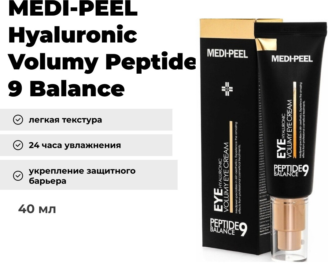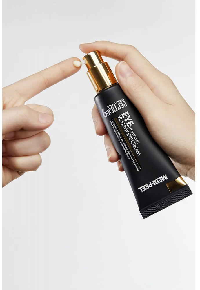 Омолаживающий крем для век с пептидами Medi-Peel Peptide Balance9 Eye Hyaluronic Volumy Eye Cream обладает ярко выраженным подтягивающим действием и эффектом лифтинга. Разглаживает мелкие мимические морщинки и сокращает выраженность более глубоких, поддерживает упругость и эластичность кожи, укрепляет тургор и замедляет процессы старения.