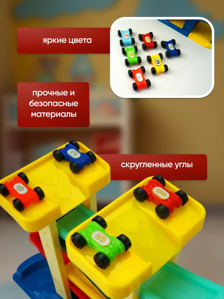 Погрузитесь в атмосферу азарта и эмоций, которые дарят настоящие гонки, с нашим увлекательным гоночным треком! Эта игра станет настоящим открытием для юных автолюбителей и автолюбительниц. Миниатюрные спортивные автомобили с номерами на корпусах с лёгкостью преодолевают крутые повороты, совершают захватывающие прыжки и даже трюки.