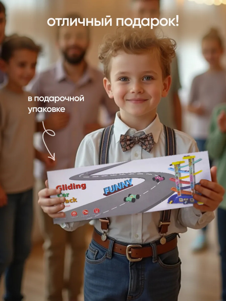 Такая игра стимулирует общение со сверстниками, учит дружелюбной конкуренции и взаимопомощи. Каждая игра с гоночной трассой станет новым открытием для вашего сына или дочки, открывая им мир гонок, скорости и захватывающих приключений. Это замечательный подарок на день рождения для всех любителей автомобилей. Подарите своему ребёнку радость и возможность развиваться в процессе игры с нашим детским набором для соревнований!