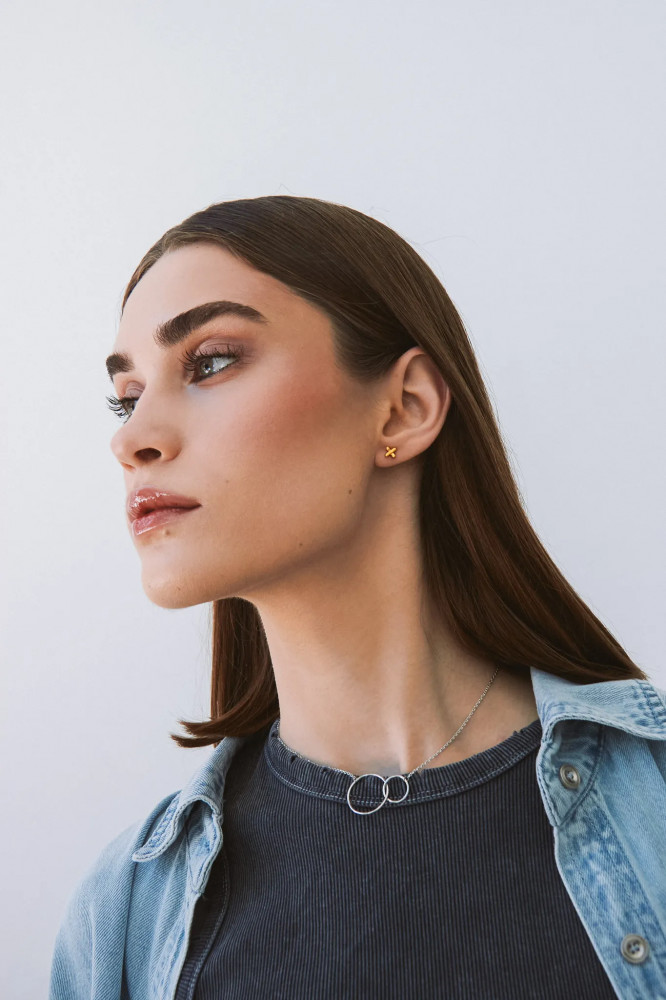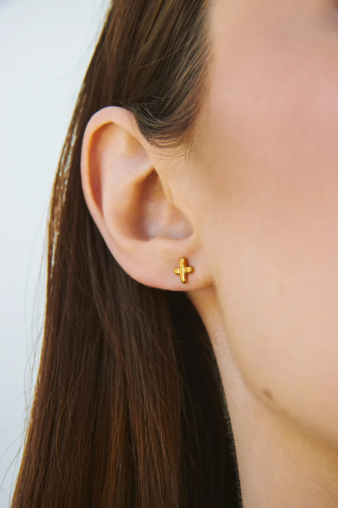 Sbleskom Серьги-пусеты из серебра с позолотой «Вышивка»