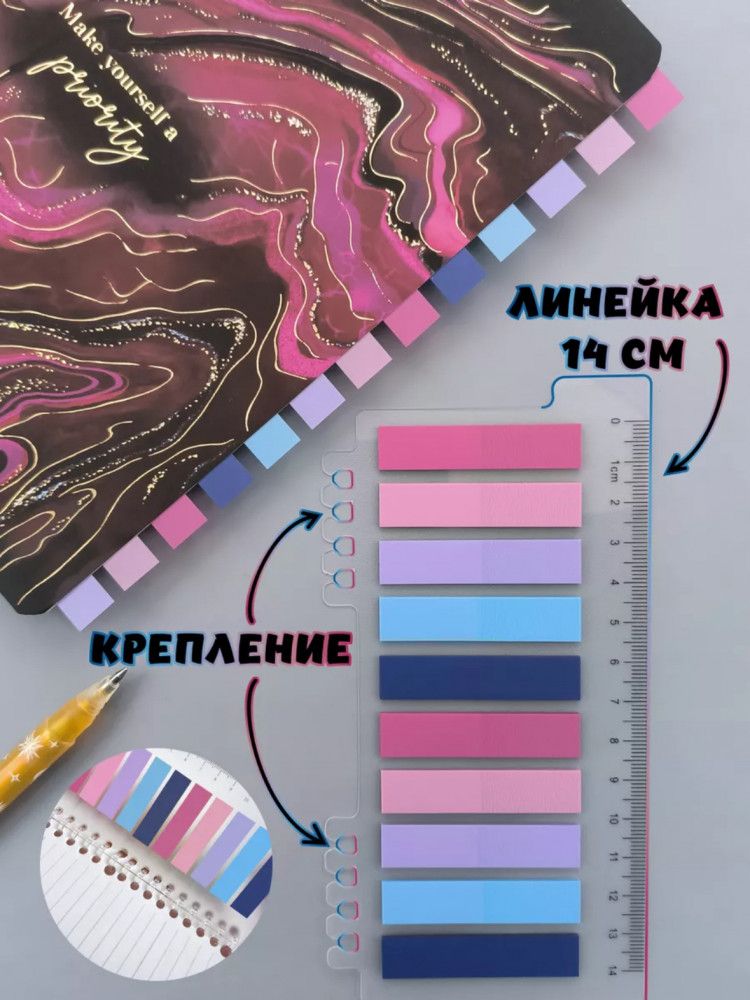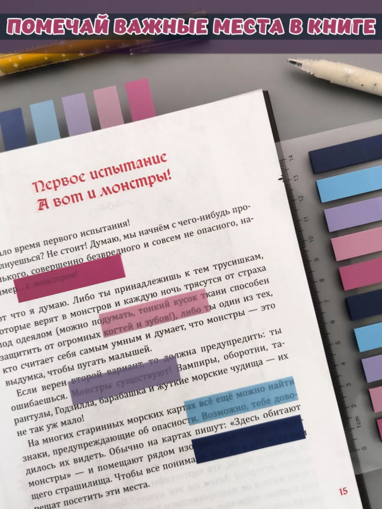 Стикеры-закладки для книг с линейкой