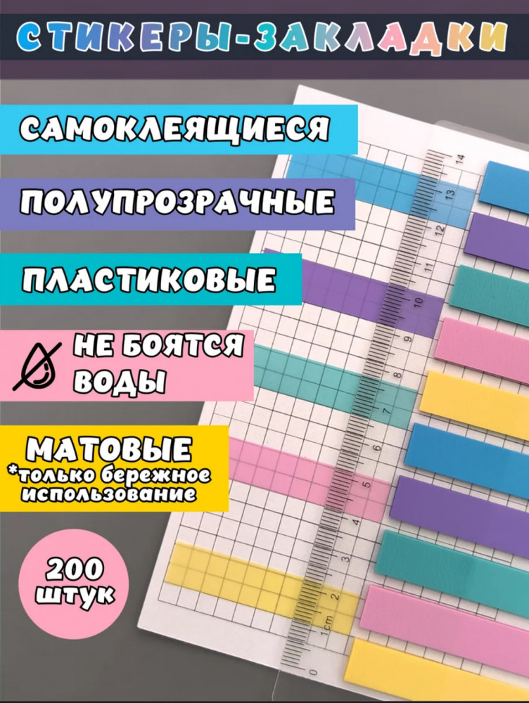 Стикеры-закладки для книг с линейкой