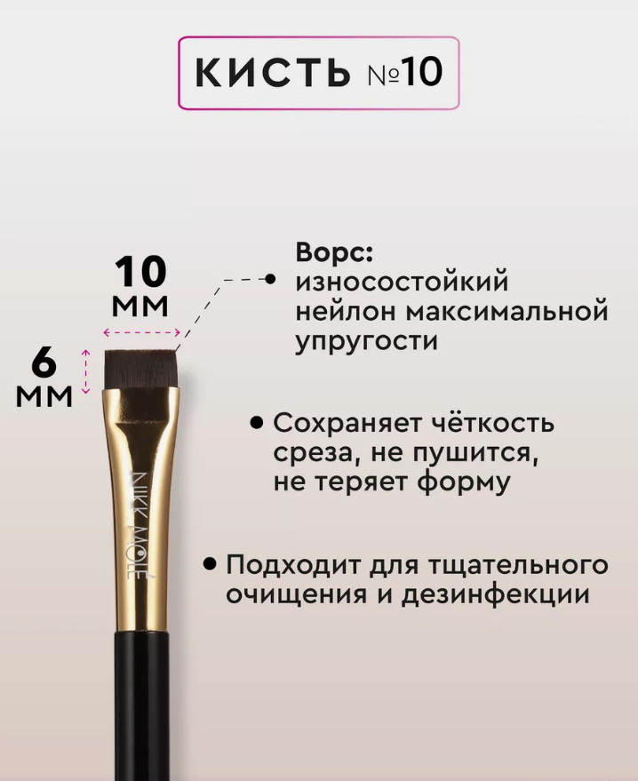 Nikk Mole Кисть для консилера и пасты для моделирования формы бровей №10В данный момент этот товар отсутствует в продаже. Возможно, у нас найдется аналогичный или похожий товар здесь. Кисть для нанесения Brow Paste BG № 10 — плоская кисть прямой формы для Brow Paste и консилера; для нанесения клея и составов при ламинировании бровей и ресниц; для макияжа бровей. |