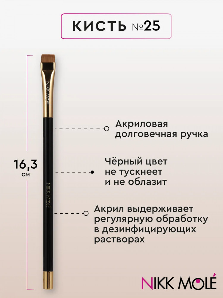 Nikk Mole Кисть для консилера и пасты для моделирования формы бровей №25В данный момент этот товар отсутствует в продаже. Возможно, у нас найдется аналогичный или похожий товар здесь. Кисть для нанесения Brow Paste BG № 25 — плоская кисть прямой формы для Brow Paste и консилера; для нанесения клея и составов при ламинировании бровей и ресниц; для макияжа бровей. |