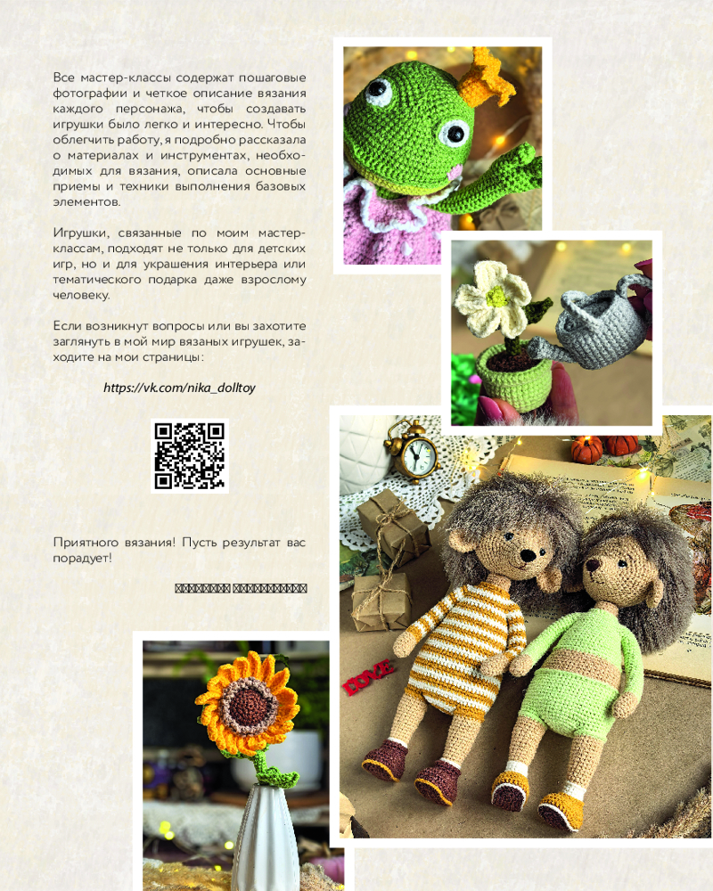 💳 Оплатить за товар можно при получении 🇰🇿 Есть бесплатная доставка по Казахстану от 1 дня 🎁 Копите бонусы с каждой покупки Серия: Рукоделие РуНета В книгу вошли 5 мастер-классов. Вы сможете связать влюбленных вишенок, лягушек Жабера и Жабетту, ежиков Пинкуса и Пруденс, детективов Шерлу Фокс и Доктора Таксона. Все мастер-классы содержат пошаговые фотографии и подробное описание вязания каждого персонажа, чтобы создавать их было легко и интересно. Игрушки не только подойдут детям, но и станут украшением интерьера или тематическим подарком для взрослого человека. Также автор подробно разобрал все необходимые для работы материалы и инструменты, описал основные приемы и техники выполнения всех элементов. Внутри книги вы также найдете подарок: дополнительный мастер-класс по вязанию снеговика и снежки! |