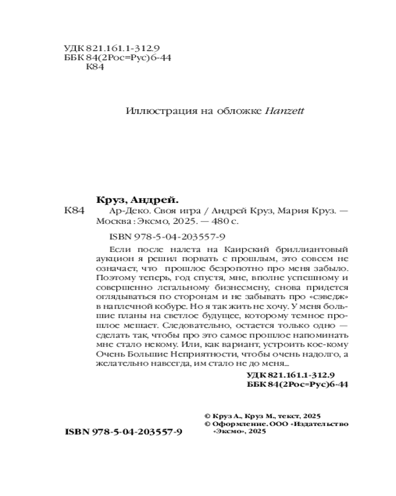 💳 Оплатить за товар можно при получении 🇰🇿 Есть бесплатная доставка по Казахстану от 1 дня 🎁 Копите бонусы с каждой покупки Серия: Боевая фантастика Андрея Круза (покет) Если после налета на Каирский бриллиантовый аукцион я решил порвать с прошлым, это совсем не означает, что прошлое безропотно про меня забыло. Поэтому теперь, год спустя, мне, вполне успешному и совершенно легальному бизнесмену, снова придется оглядываться по сторонам и не забывать про «сэведж» в наплечной кобуре. Но я так жить не хочу. У меня большие планы на светлое будущее, которому темное прошлое мешает. Следовательно, остается только одно — сделать так, чтобы про это самое прошлое напоминать мне стало некому. Или, как вариант, устроить кое-кому очень большие неприятности, чтобы очень надолго, а желательно навсегда, им стало не до меня... |