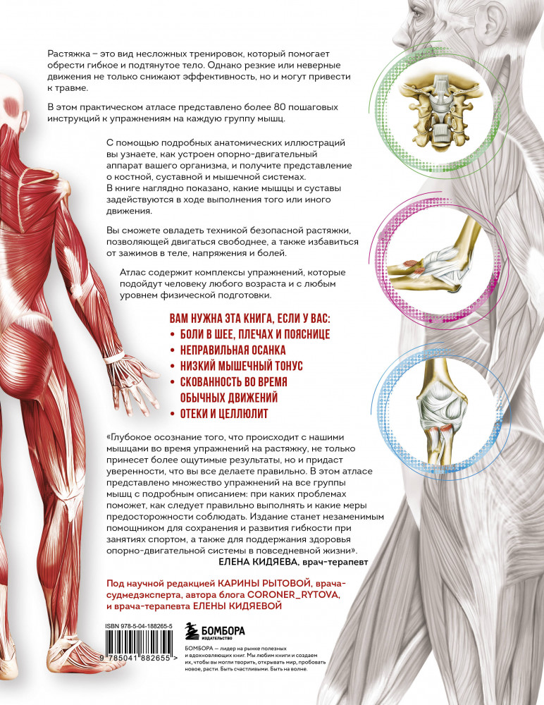 💳 Оплатить за товар можно при получении 🇰🇿 Есть бесплатная доставка по Казахстану от 1 дня 🎁 Копите бонусы с каждой покупки Серия: Анатомия спорта Сидячая работа, недостаточная активность и банальное невнимание к позвоночнику — все это приводит к зажимам в теле, напряжению в мышцах и малоподвижным суставам. Вы сможете избавиться от этих проблем с помощью комплекса упражнений по растяжке, который можно выполнять в любом месте, с любым уровнем подготовки и без специальных приспособлений. В этом практическом атласе представлено более 80 пошаговых инструкций к упражнениям для всего тела: вы поймете, какой эффект они приносят, какие мышцы задействуют и как именно их выполнять для достижения результата. |