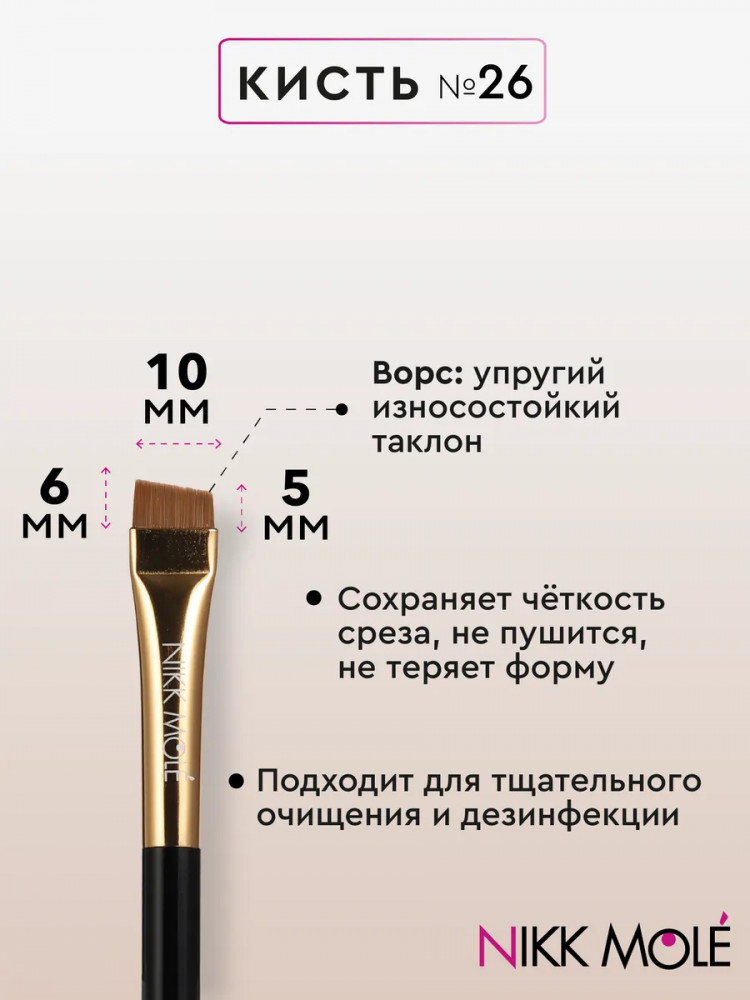 Nikk Mole Кисть для окрашивания и макияжа бровей №26В данный момент этот товар отсутствует в продаже. Возможно, у нас найдется аналогичный или похожий товар здесь. Кисть для окрашивания бровей BG № 26 — плоская скошенная кисть для нанесения Brow Paste и хны/краски при окрашивании бровей; для нанесения составов ламинирования; для макияжа бровей. |