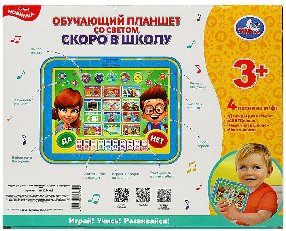 Обучающий планшет со светом «Скоро в школу» ТМ «УМка» станет прекрасным подарком для маленького любознайки. Ваш малыш непременно полюбит этот планшет. С ним ребёнок быстро и эффективно сможет подготовиться к школе. Малыш с удовольствием будет нажимать на кнопки, слушать любимые песни и весёлые звуки. А экзаменационный режим поможет проверить новые знания. Обучающий планшет ТМ «УМка» способствует расширению кругозора и развивает: звуковое восприятие, музыкальный слух, память, мелкую моторику, фантазию и речь. |