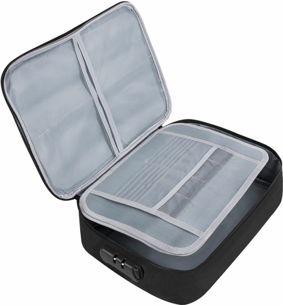 Органайзер позволяет структурировать большое количество документов и ценных вещей. Кодовый замок надежно закрывает органайзер, не позволяя содержимому выпасть. Папка-органайзер защищает документы от влаги, пыли и механических повреждений. Представлена в солидном черном цвете.