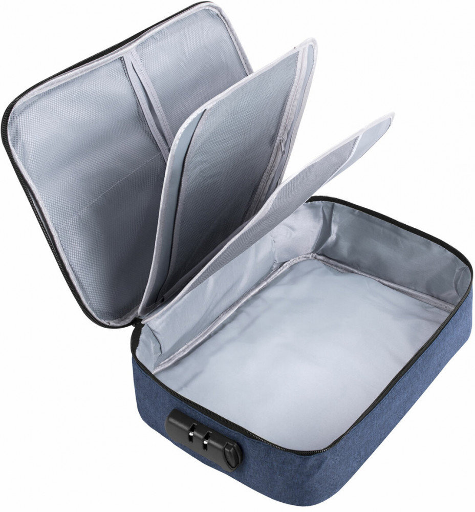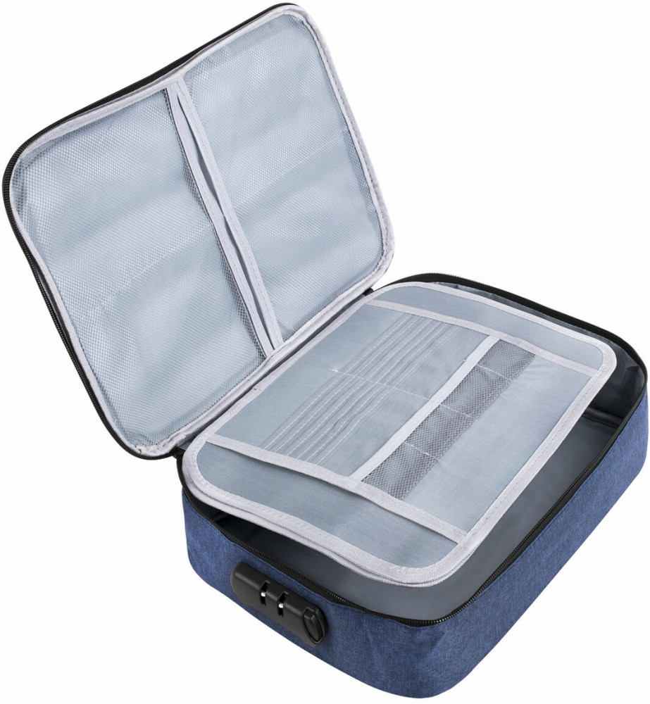 Органайзер позволяет структурировать большое количество документов и ценных вещей. Кодовый замок надежно закрывает органайзер, не позволяя содержимому выпасть. Папка-органайзер защищает документы от влаги, пыли и механических повреждений. Представлена в солидном синем цвете.