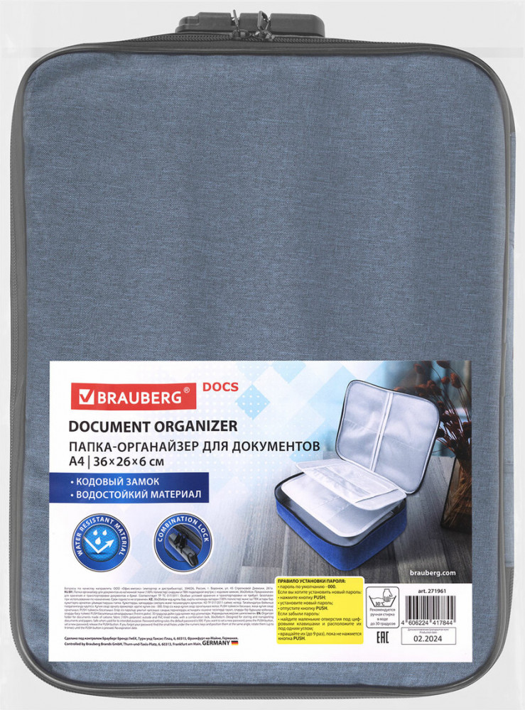Папка-органайзер для документов с кодовым замком Brauberg Docs предназначена для хранения и транспортировки важных документов и ценных вещей. Незаменима для хранения семейных документов, документов для учебы, работы, деловых поездок.
