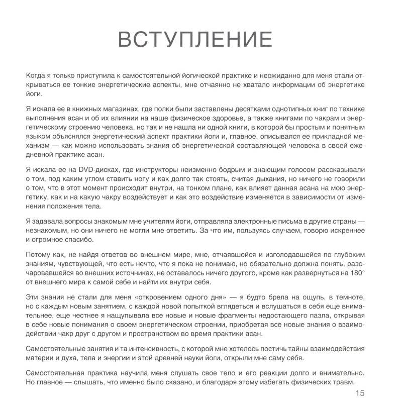 Когда в книге собираются вместе накопленные знания и личный опыт — это интересная книга! Когда практик и он же писатель так открыто делится своим видением йоги, своим подходом к этой неисчерпаемой системе, дарит возможность заглянуть в самые потаенные уголки своей Души и своей Практики — это очень личная книга!