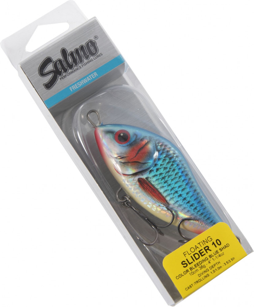 Воблер Salmo Slider — это представитель так называемых глайдеров (разновидность джеркбейтов). Выпускается в ассортименте польской компании Salmo с 2003 года, является удачной моделью, продаваемой по сей день. Воблер имеет несколько вариантов, различающихся по типу — F — плавающий, S — тонущий, а так же размерному ряду, 5, 6, 7, 10, 12 см. При этом существует множество расцветок воблера, всего до 26 вариантов. Приманка довольно интересная, со скользящей извилистой игрой, особенности которой просматриваются особенно красочно при жадных атаках хищных рыб. Рыба берет совершенно разная, — окунь, щука, судак, сом. С какими параметрами и характеристиками купить воблер выбирайте сами, все зависит от персональных предпочтений и желаний конкретного рыболова.