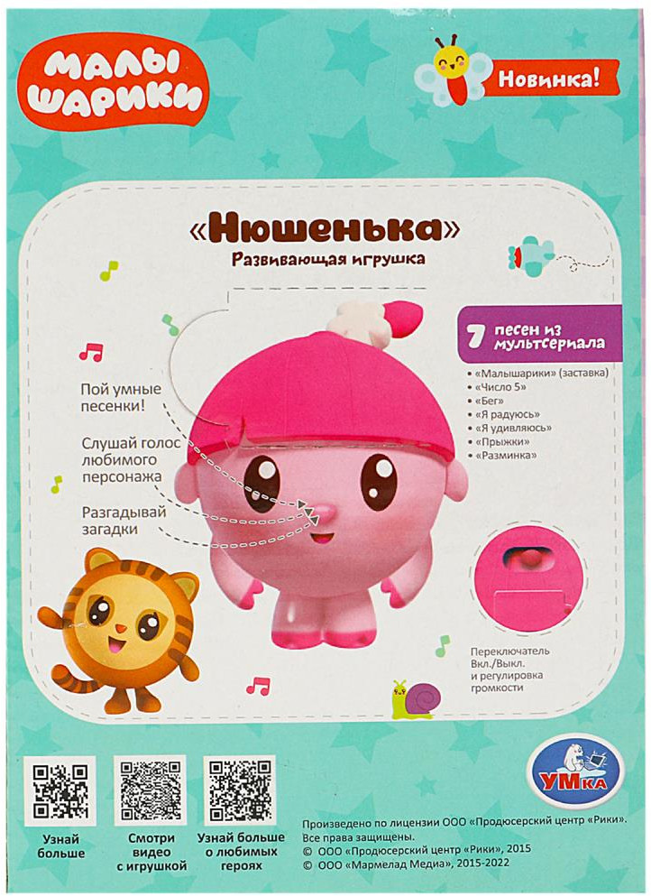 💳 Оплатить за товар можно при получении 🇰🇿 Есть бесплатная доставка по Казахстану от 1 дня 🎁 Копите бонусы с каждой покупки Серия: Малышарики Очаровательная Нюшенька со световыми эффектами непременно понравится Вашему малышу и займёт его на долгое время. Ребёнок с удовольствием будет слушать любимые песни из мультфильма и отгадывать загадки. Благодаря небольшому размеру игрушку удобно брать повсюду с собой. |