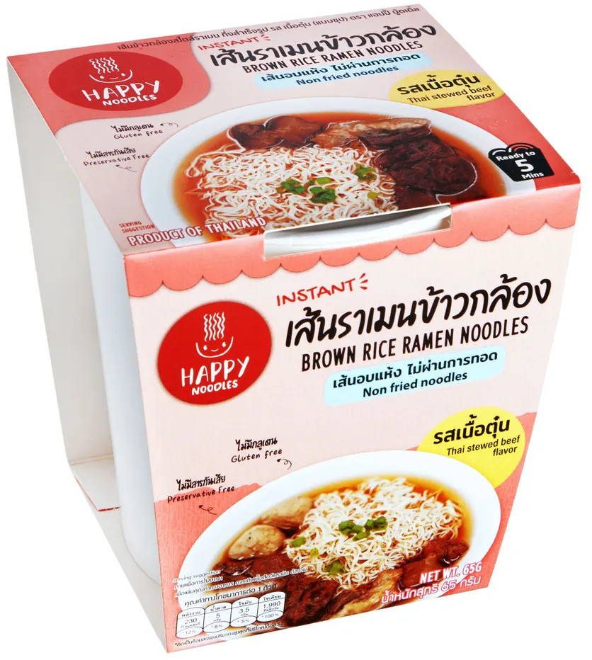 Happy Noodles Рамен быстрого приготовления из коричневого риса «Говядина по-тайски»
