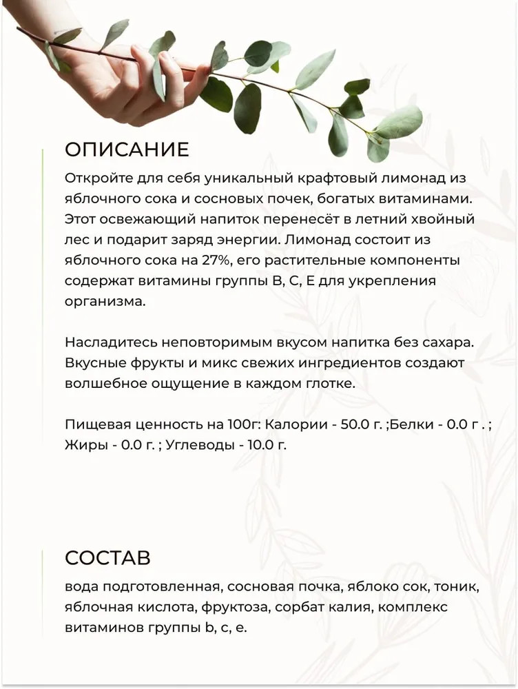 Floris Лимонад среднегазированный «Сосновая почка, яблоко и комплекс витаминов»