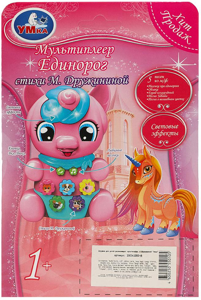 💳 Оплатить за товар можно при получении 🇰🇿 Есть бесплатная доставка по Казахстану от 1 дня 🎁 Копите бонусы с каждой покупки Мультиплеер «Единорог» ТМ «УМка» станет прекрасным подарком для ребёнка. Малыш будет в восторге от этой игрушки в виде милого единорога. Он с удовольствием будет нажимать на разноцветные кнопочки и слушать весёлые песенки и интересные стихи. Благодаря компактным размерам мультиплеер удобно брать с собой на прогулки или в поездки. Игра с развивающим мультиплеером ТМ «УМка» способствует развитию: слухового восприятия и музыкального слуха, тактильных навыков, визуального восприятия, логического мышления и мелкой моторики. |