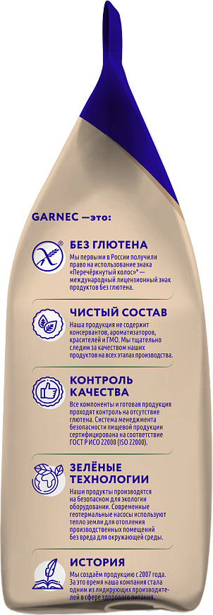 Торговая марка Garnec — это воплощение качества и заботы о здоровье. Мы гордимся тем, что все компоненты и готовая продукция подвергаются строгому контролю на отсутствие глютена. Это особенно важно для тех, кто следит за своим здоровьем и имеет специфические диетические требования. В ассортименте мука, смеси для выпечки и макаронные изделия.