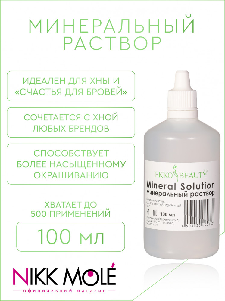 Ekko Beauty Раствор минеральный для разведения хныВ данный момент этот товар отсутствует в продаже. Возможно, у нас найдется аналогичный или похожий товар здесь. Минеральный раствор Ekko Beauty для разведения хны (100 мл) используется для смешивания с хной при процедуре окрашивания бровей. Состав позволяет получить более однородную смесь для нанесения на кожу. Он содержит оптимальный состав минералов, за счет чего рабочий состав хны получается более мягким, а яркость цвета будет держаться максимально долго. Его формула не содержит посторонних примесей, добавок и тяжелых металлов. Взаимодействуя с хной, минеральный раствор позволяет получить гарантированный результат и продлить стойкость окрашивания, а удобная упаковка позволяет расходовать средство экономно. |