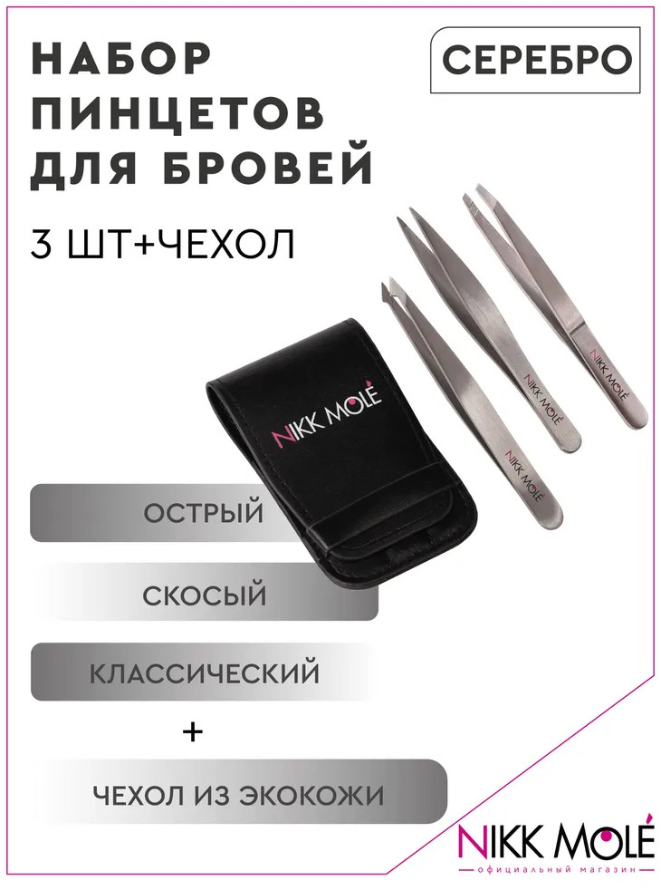 Набор пинцетов для бровей в чехле | Nikk Mole