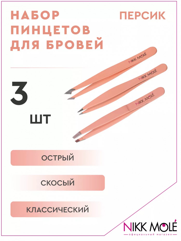В данный момент этот товар отсутствует в продаже. Возможно, у нас найдется аналогичный или похожий товар здесь. Благодаря алмазной заточке пинцетов в элегантном розовом дизайне с легкостью захватывает любые волоски, помогая добиться совершенного результата в оформлении бровей. Пинцеты для бровей Nikk Mole точно захватывает даже самые тонкие волоски, позволяя безупречно откорректировать форму бровей. Обтекаемая форма делает фирменный набор пинцетов невероятно удобными в работе.
