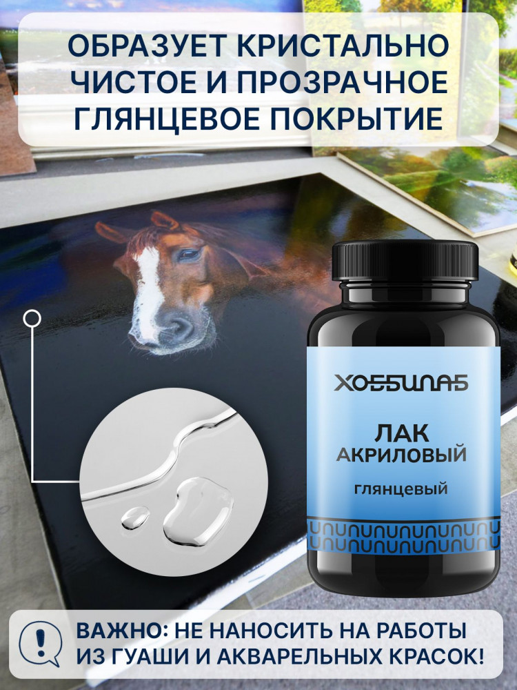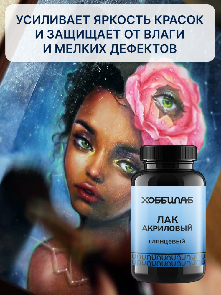 Акриловый глянцевый лак предназначен для защиты поверхностей от влаги и мелких дефектов. Образует кристально чистое и прозрачное глянцевое покрытие. Лак для акрила усиливает яркость красок. Подходит для холста, дерева, картона, стекла и т.д. Не имеет запаха, не оставляет разводов, не желтит, легко колеруется. Не наносить на работы из гуаши и акварельных красок!