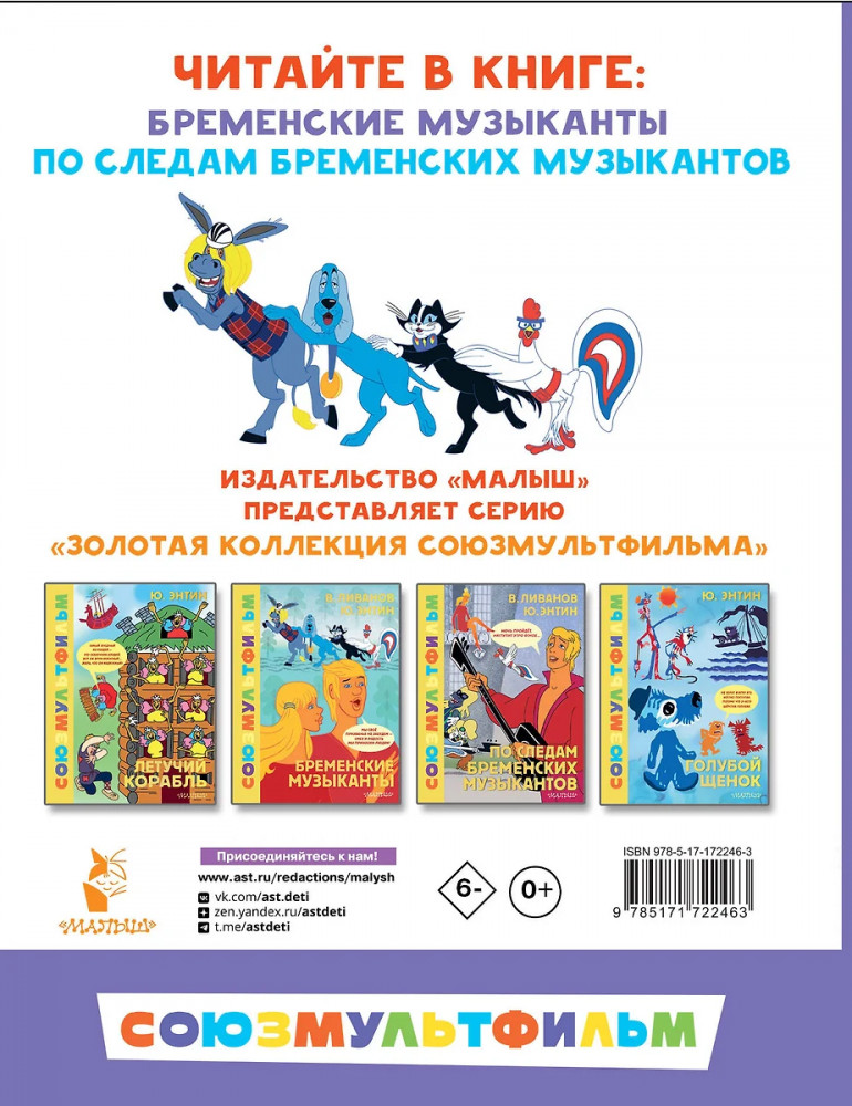 💳 Оплатить за товар можно при получении 🇰🇿 Есть бесплатная доставка по Казахстану от 1 дня 🎁 Копите бонусы с каждой покупки Серия: Лучшая детская книга. Союзмультфильм Мультфильм «Бременские музыканты», созданный по мотивам сказки братьев Гримм, вышел на экраны в 1969 году. Сценарий к нему написали актёр, режиссёр и писатель Василий Ливанов и поэт и драматург Юрий Энтин. Мультфильм пользовался большой популярностью, вся страна распевала песни Трубадура, Разбойников, Короля и Принцессы. Стихи к песням написал Юрий Энтин, а музыку — Геннадий Гладков. В 1973 году вышло продолжение мультфильма: «По следам Бременских музыкантов». В книгу вошли две сказки с песнями: «Бременские музыканты» и «По следам Бременских музыкантов». |