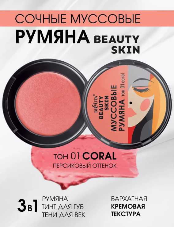 Bielita Румяна для лица муссовые «Beauty Skin», тон 01 coral