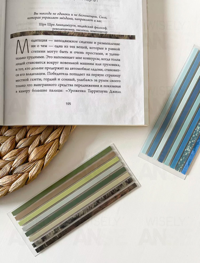 Чтение станет более продуктивным, так как вы сможете фиксировать понравившиеся цитаты из книг, запоминать или выписывать их. Самое главное, что вы можете снять стикер в любой момент. Параметры одной наклейки: длина 13.5 см и ширина 5 мм. Они изготовлены из высококачественного термопластика с клеевым краем с одной стороны. Стикерпак имеет матовое нежное покрытие, а стикеры полупрозрачные! Вы можете применять их для выделения текста в ежедневнике, планере и фотоальбоме, чтобы ни одна важная запись не осталась без внимания. Кроме того, вы можете использовать их в миксе с другими наклейками в своих творческих проектах.