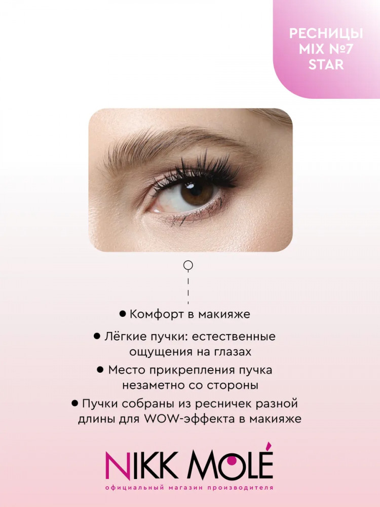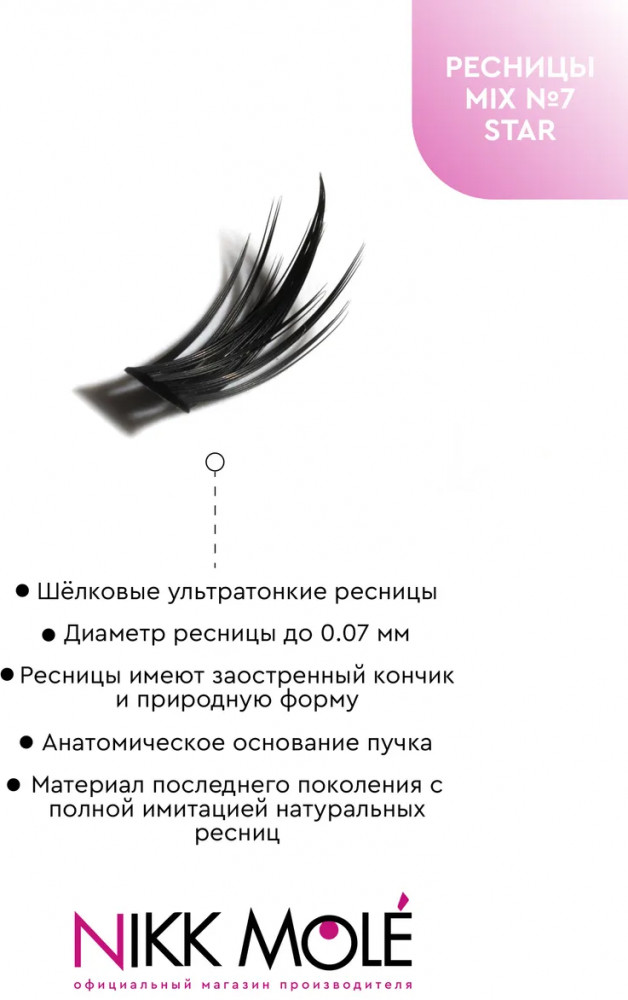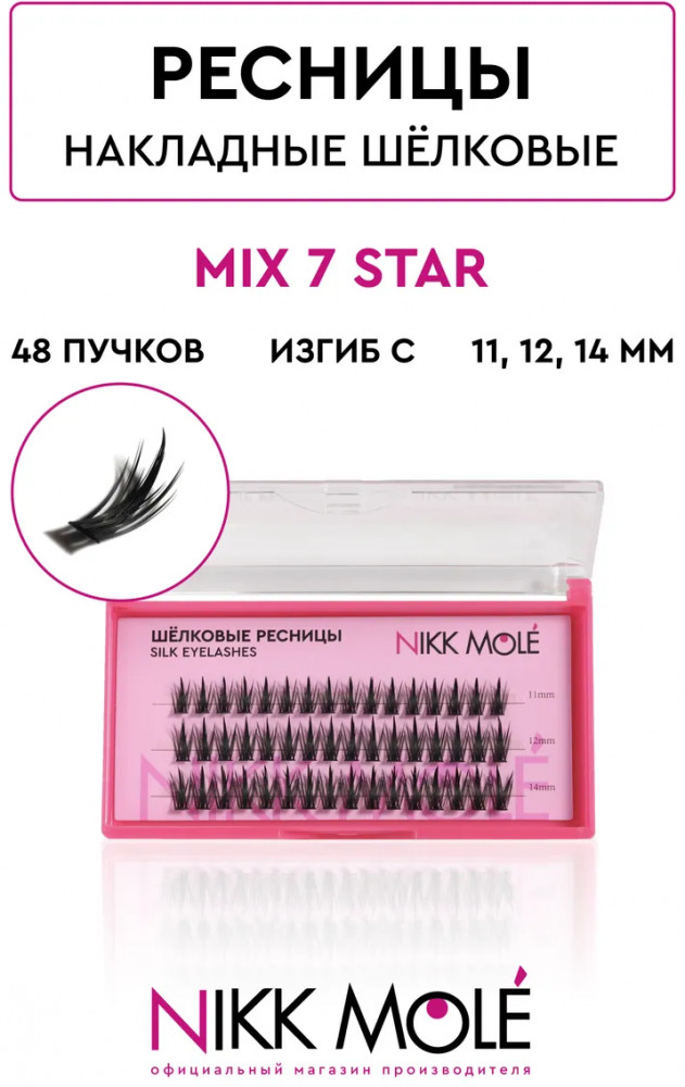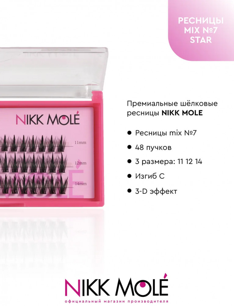 Набор накладных ресниц Nikk Mole в пучках для создания эффекта объемных, густых, длинных ресниц от природы. Благодаря минимальному диаметру реснички (всего 0.07 мм), пучки естественным образом дополняют природную ресничную линию. Распахнутый взгляд и пушистые ресницы, украшающие любой макияж. Премиальное качество с использованием новейшего ультратонкого материала. Форма каждой реснички имеет органичное заострение к кончику, искусственные ресницы фактически не отличить от настоящих.
