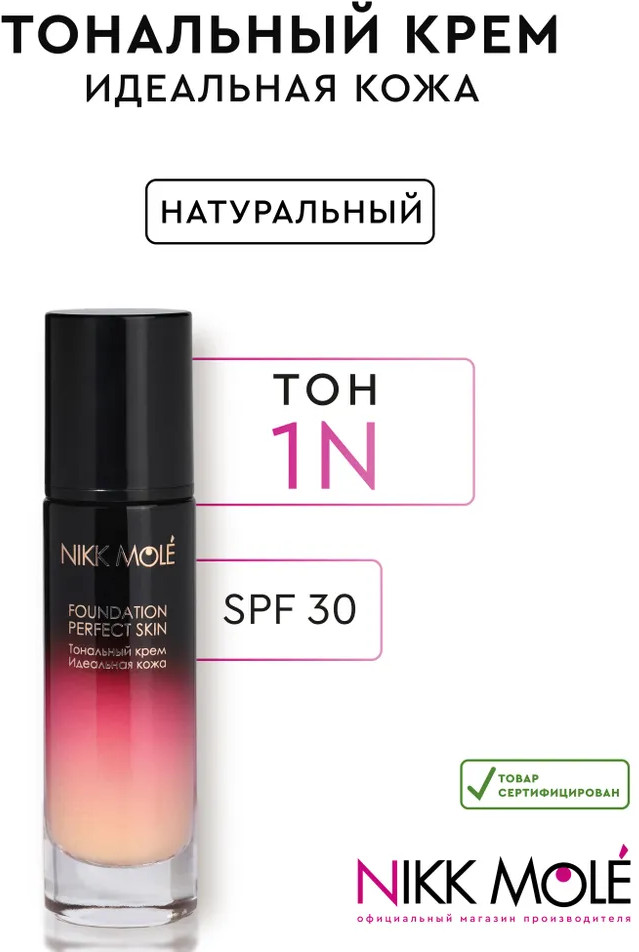 Nikk Mole Тональный крем для лица «Идеальная кожа» SPF 30+, оттенок 1N Натуральный