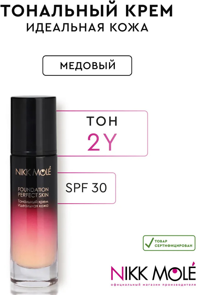 Nikk Mole Тональный крем для лица «Идеальная кожа» SPF 30+, оттенок 2Y Медовый