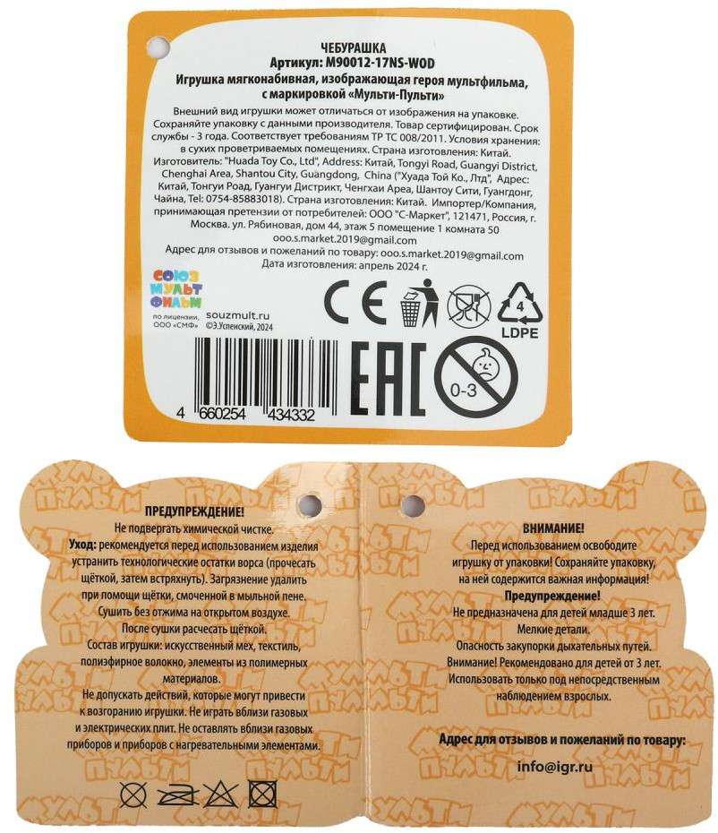 Мульти-Пульти Игрушка мягкая «Чебурашка»В данный момент этот товар отсутствует в продаже. Возможно, у нас найдется аналогичный или похожий товар здесь. Серия: Чебурашка и крокодил Гена Мягкая игрушка «Чебурашка» ТМ «Мульти-Пульти» непременно понравится маленькому поклоннику добрых мультфильмов студии «Союзмультфильм». Малыш будет рад знакомству с таким очаровательным ушастым зверьком, который выполнен в точности как известный персонаж. С этой очень мягкой на ощупь игрушкой, с вышитым безопасным лицом, дети могут воссоздать уже знакомые по м/ф сюжеты или придумать новые. Милый ушастик станет малышу добрым другом, которого можно взять с собой на прогулку или в поездку. |