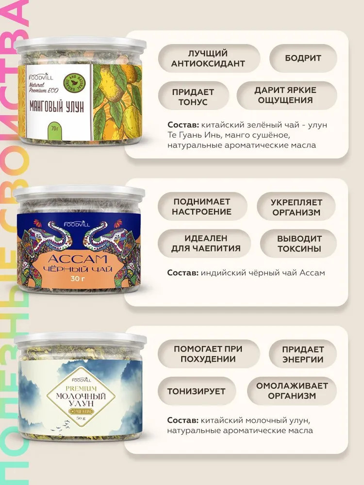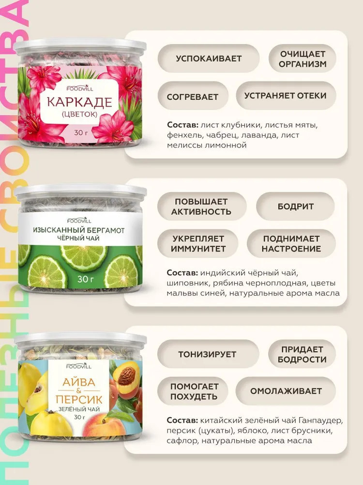 Foodvill Набор чая подарочный «Коллекция премиальных чаёв»В данный момент этот товар отсутствует в продаже. Возможно, у нас найдется аналогичный или похожий товар здесь. Чай — это не просто напиток, а целая культура, соединяющая в себе традиции, вкусы и ароматы со всего мира. Каждая чашка чая — это маленькое путешествие, которое может подарить бодрость утром, расслабление вечером или уют в любое время дня. Разнообразие сортов и вкусов позволяет найти свой идеальный чай для любого настроения и случая. От классического чёрного Ассама до экзотического анчана — каждый вид чая уникален и обладает своими особенностями и полезными свойствами. Давайте познакомимся ближе с 12 удивительными видами чая и откроем для себя новые вкусовые грани! |