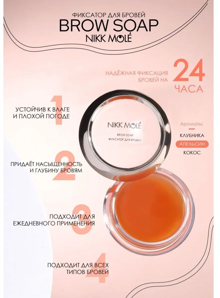 Nikk Mole Фиксатор для бровей с ароматом апельсина «Brow Soap»В данный момент этот товар отсутствует в продаже. Возможно, у нас найдется аналогичный или похожий товар здесь. Мыло для бровей Nikk Mole — настоящая находка для обладательниц непослушных бровей. Он влагоустойчив к любой погоде, подходит для всех видов бровей и надежно фиксирует брови на целый день. |