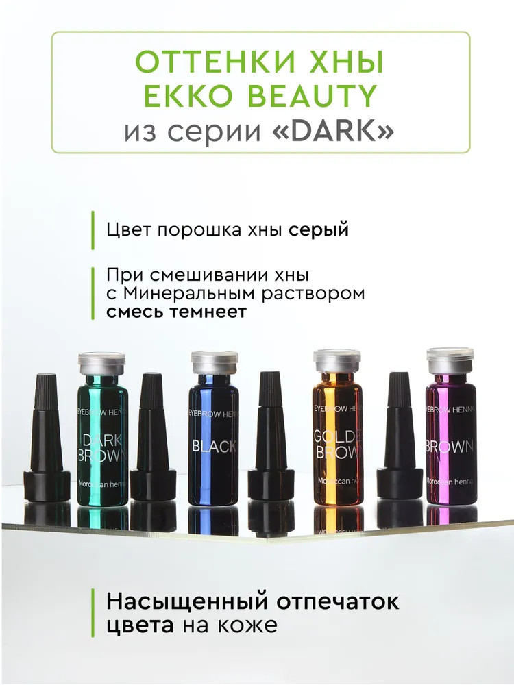 Окрашивание бровей хной для бровей Ekko Beauty — это гарантия красиво очерченной формы и естественного оттенка. В финале процедуры вы получаете совершенный результат с выраженным ухаживающим эффектом — более упругие и блестящие волоски бровей всего за одну процедуру.