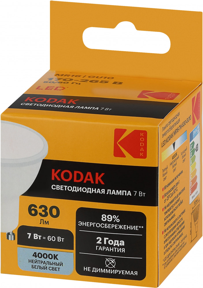 💳 Оплатить за товар можно при получении 🇰🇿 Есть бесплатная доставка по Казахстану от 1 дня 🎁 Копите бонусы с каждой покупки Представляем Вашему вниманию новинку от легендарного бренда Kodak — светодиодные лампочки, которые украсят Ваш интерьер и наполнят дом светом! Лампы всемирно известной марки отличаются традиционно высоким качеством, продолжительным сроком службы, эксплуатационной надежностью, и, конечно, доступной ценой. LED KODAK MR16-7W-840-GU10 — лампочка с цоколем GU10, отлично подойдет для самых разных целей: ее можно установить в люстру или светильник на кухне, в спальне, детской комнате или коридоре. Мощность лампы составляет 7Вт, эквивалент лампе накаливания — 60Вт. Цветовая температура — 4000К — нейтральный белый свет, похожий на дневной. Такой свет идеально подойдет для комфортного пребывания в помещении, лампу можно использовать как для жилых, так и для рабочих зон. Диаметр лампочки составляет 50мм, а высота — 56мм. Корпус устройств выполнен из высококачественных алюминия и термо пластика, что делает использование источников света абсолютно безопасным. Невозможно оставить без внимания неоспоримые преимущества технологии, в которой выполнены лампы: LED (светодиоды KODAK). В первую очередь, это высокая светоотдача и низкое энергопотребление: эти источники света тратят в 10 раз меньше, чем лампы накаливания. Срок службы — 35000 часов — более чем 3,5 года постоянного свечения. Еще одно преимущество — светодиоды не содержат в себе ртути и прочих вредных металлов. Купив лампу от Kodak, Вы сможете быть уверены в высоком качестве продукта и безопасности своих близких. |