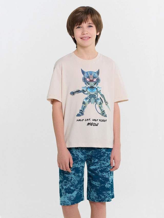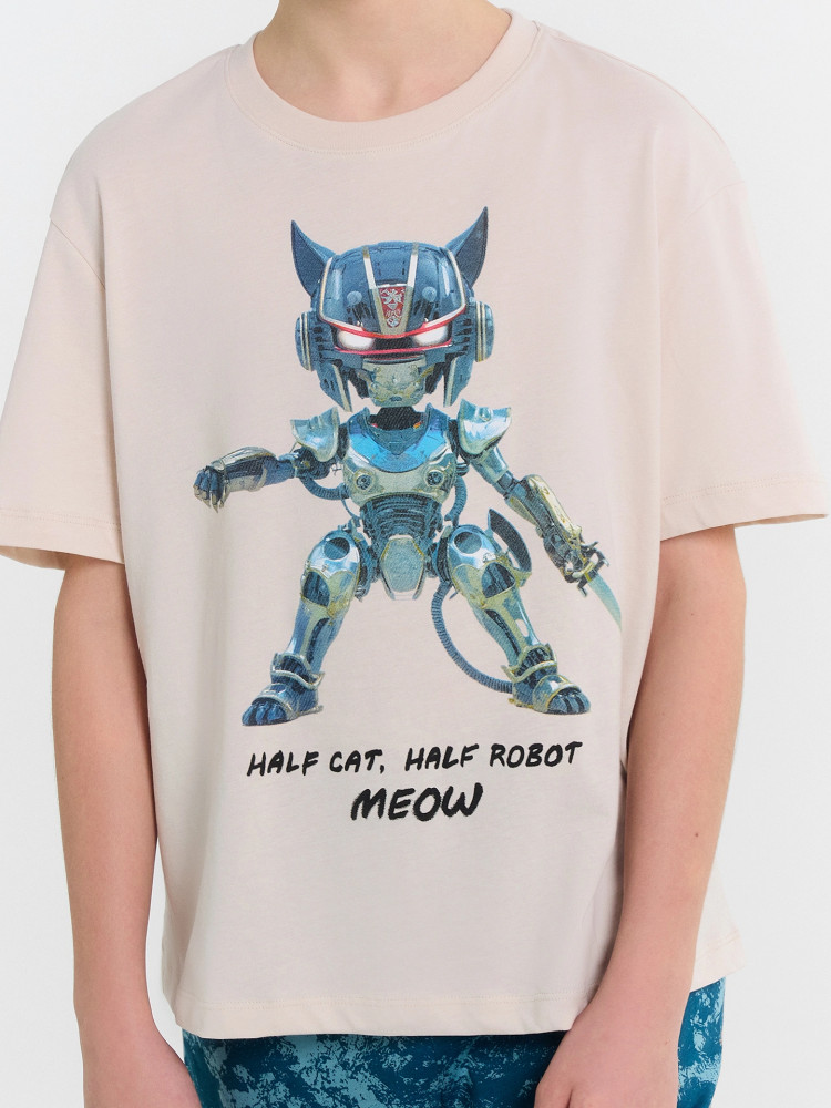 Mark Formelle Пижама для мальчиков с принтом «Half cat half robot meow»