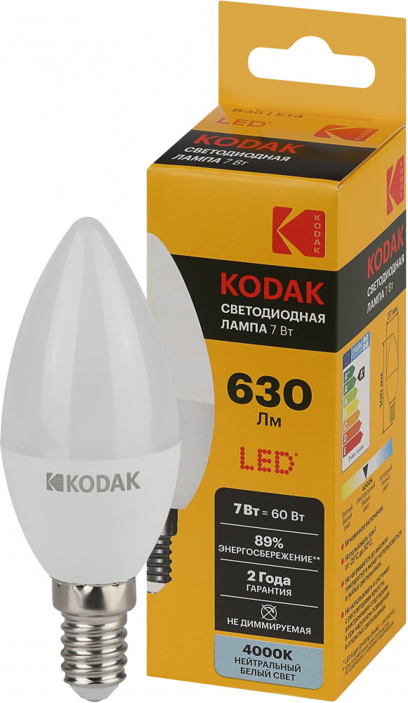 Kodak Лампа светодиоднаяВ данный момент этот товар отсутствует в продаже. Возможно, у нас найдется аналогичный или похожий товар здесь. Представляем Вашему вниманию новинку от легендарного бренда Kodak — светодиодные лампочки, которые украсят Ваш интерьер и наполнят дом светом! Лампы всемирно известной марки отличаются традиционно высоким качеством, продолжительным сроком службы, эксплуатационной надежностью, и, конечно, доступной ценой. LED KODAK B35-7W-840-E14 — лампочка с цоколем E14, отлично подойдет для самых разных целей: ее можно установить в люстру или светильник на кухне, в спальне, детской комнате или коридоре. Мощность лампы составляет 7Вт, эквивалент лампе накаливания — 60Вт. Цветовая температура — 4000К — нейтральный белый свет, похожий на дневной. Такой свет идеально подойдет для комфортного пребывания в помещении, лампу можно использовать как для жилых, так и для рабочих зон. Диаметр лампочки составляет 37мм, а высота — 110мм. Корпус устройств выполнен из высококачественных алюминия и термо пластика, что делает использование источников света абсолютно безопасным. Невозможно оставить без внимания неоспоримые преимущества технологии, в которой выполнены лампы: LED (светодиоды KODAK). В первую очередь, это высокая светоотдача и низкое энергопотребление: эти источники света тратят в 10 раз меньше, чем лампы накаливания. Срок службы — 35000 часов — более чем 3,5 года постоянного свечения. Еще одно преимущество — светодиоды не содержат в себе ртути и прочих вредных металлов. Купив лампу от Kodak, Вы сможете быть уверены в высоком качестве продукта и безопасности своих близких. |