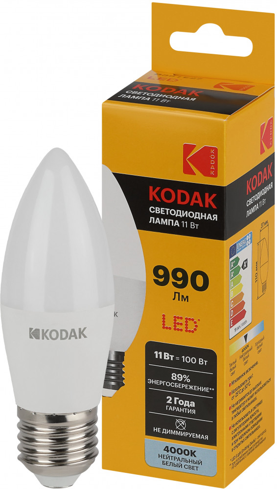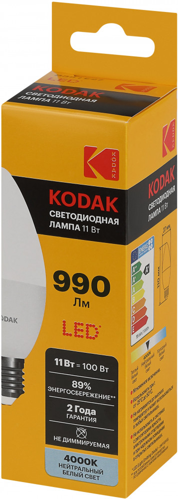 💳 Оплатить за товар можно при получении 🇰🇿 Есть бесплатная доставка по Казахстану от 1 дня 🎁 Копите бонусы с каждой покупки Представляем Вашему вниманию новинку от легендарного бренда Kodak — светодиодные лампочки, которые украсят Ваш интерьер и наполнят дом светом! Лампы всемирно известной марки отличаются традиционно высоким качеством, продолжительным сроком службы, эксплуатационной надежностью, и, конечно, доступной ценой. LED KODAK B35-11W-840-E27 — лампочка с цоколем E27, отлично подойдет для самых разных целей: ее можно установить в люстру или светильник на кухне, в спальне, детской комнате или коридоре. Мощность лампы составляет 11Вт, эквивалент лампе накаливания — 100Вт. Цветовая температура — 4000К — нейтральный белый свет, похожий на дневной. Такой свет идеально подойдет для комфортного пребывания в помещении, лампу можно использовать как для жилых, так и для рабочих зон. Диаметр лампочки составляет 37мм, а высота — 110мм. Корпус устройств выполнен из высококачественных алюминия и термо пластика, что делает использование источников света абсолютно безопасным. Невозможно оставить без внимания неоспоримые преимущества технологии, в которой выполнены лампы: LED (светодиоды KODAK). В первую очередь, это высокая светоотдача и низкое энергопотребление: эти источники света тратят в 10 раз меньше, чем лампы накаливания. Срок службы — 35000 часов — более чем 3,5 года постоянного свечения. Еще одно преимущество — светодиоды не содержат в себе ртути и прочих вредных металлов. Купив лампу от Kodak, Вы сможете быть уверены в высоком качестве продукта и безопасности своих близких. |