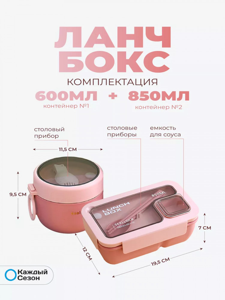 Практичный и вместительный комплект для ланча 7 в 1 станет незаменимым помощником для здорового питания и отличной альтернативой фастфуду. В набор входят многоразовые боксы для первых и вторых блюд, супница-термос, столовые приборы и стильная термосумка, сохраняющая свежесть продуктов в течение всего дня. Компактный размер и отсутствие острых углов делают ланчбокс удобным для школьников, а удобные отделения позволяют размещать несколько блюд без смешивания. Герметичная крышка с силиконовым уплотнителем и усиленными защелками предотвращает протекание, сохраняя все полезные свойства еды.