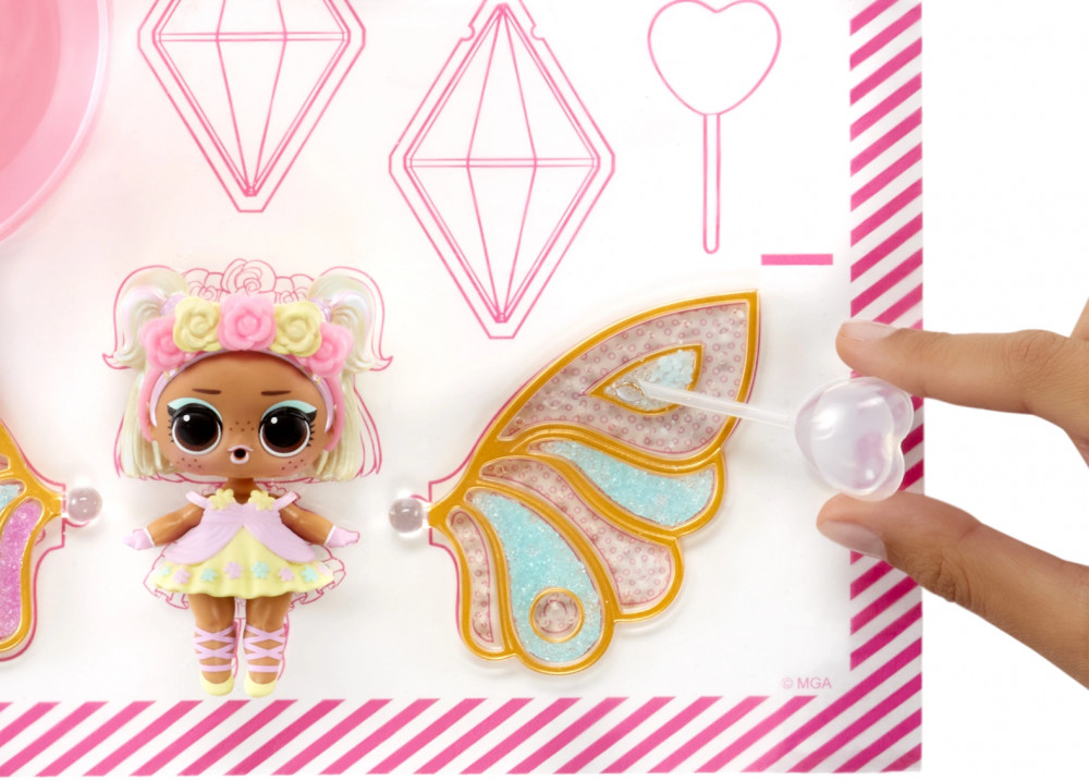 Серия: Surprise Fairies ЛОЛ Сюрпрайз — это яркие и ультрамодные куклы для девочек, которые нельзя ни с кем спутать. Совершенно новый способ игры, где вы сможете сделать крылья феи для любимой мини-куклы ЛОЛ Сюрпрайз! Создайте уникальные крылья феи: распределите «волшебную пыльцу» по форме крыльев, добавьте воду и дайте ей застыть — сказочные крылья для вашей мини-куклы готовы! Шар из набора может служить подставкой для мини-куклы феи. |