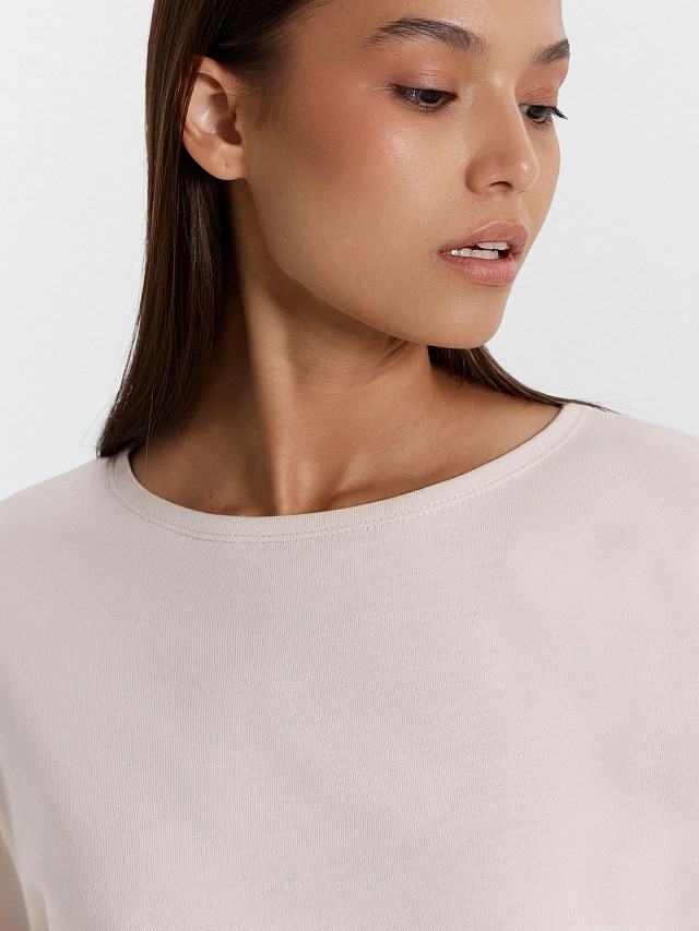 Приятная к телу, при стирке не линяет, все швы остались на месте, хорошая базовая вещь за отличную стоимость.