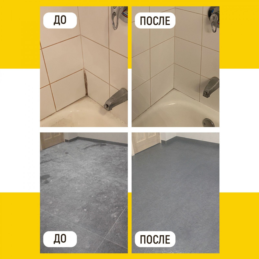 Очиститель после ремонта предназначен для эффективной очистки полов, дверных косяков, подоконников и других поверхностей от остатков цемента, бетона, ржавых пятен, известкового налета и других материалов, оставшихся после ремонта, идеально подходит в качестве растворителя плиточного клея, качественно удаляя следы затирки на кафельной плитке. Удалитель цемента подходит для устранения ржавчины и подготовки металлических поверхностей под подкраску. Расход средства: 150–350 г/м². Растворитель цемента содержит уникальную смесь органических и неорганических кислот, которые проникают глубоко внутрь остатков бетонных растворов, красителей, клея и разрушают их на молекулярном уровне. Подходит для внешних и внутренних работ: для очистки бетона, стекла, камня, керамической плитки, нержавеющей стали, посуды, керамогранита, кирпича и сантехники.