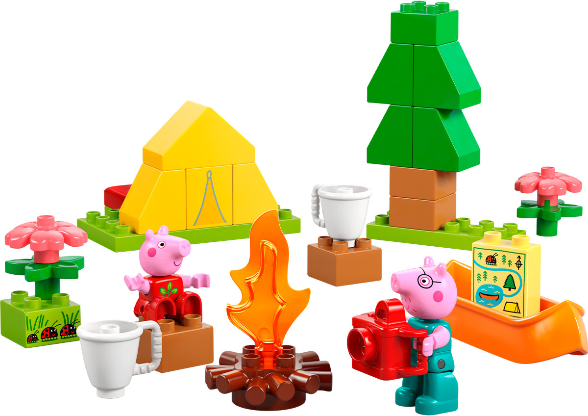 • веселое приключение LEGO® DUPLO® для малышей — дошкольники помогают Свинке Пеппе и папе Свину разбить лагерь и поставить палатку, а потом придумывают творческие истории, чтобы разыграть их с игрушечным каноэ;
